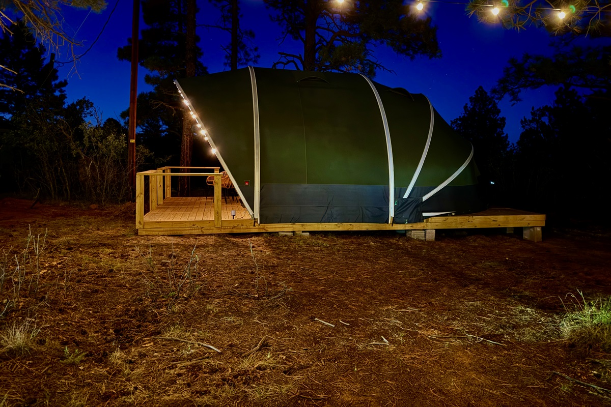 1 Bedroom • 1 Bathroom 1 Bath • Sleeps 1-2Bundle up and embrace the chill of mountain winter. The air is fresh, the stars are dazzling, and the stillness of the season invites rest and reflection. Your tent offers simple comfort and a front-row seat to the beauty of nature — cold nights, quiet mornings, and unforgettable skies.