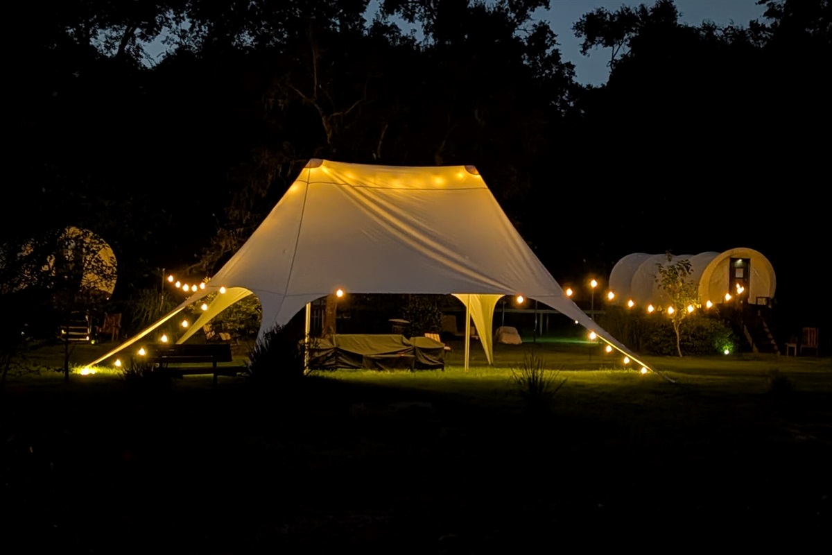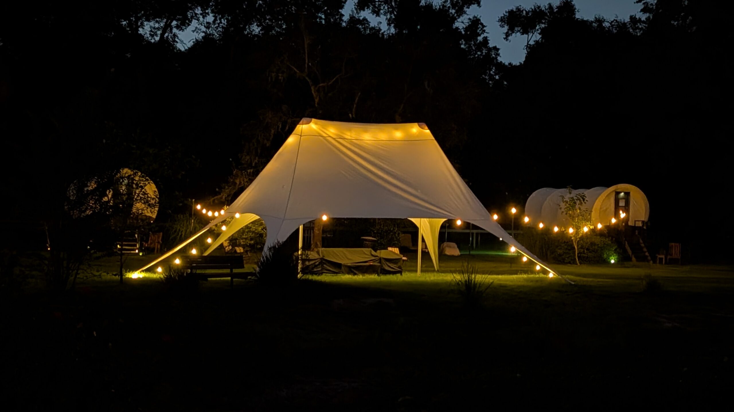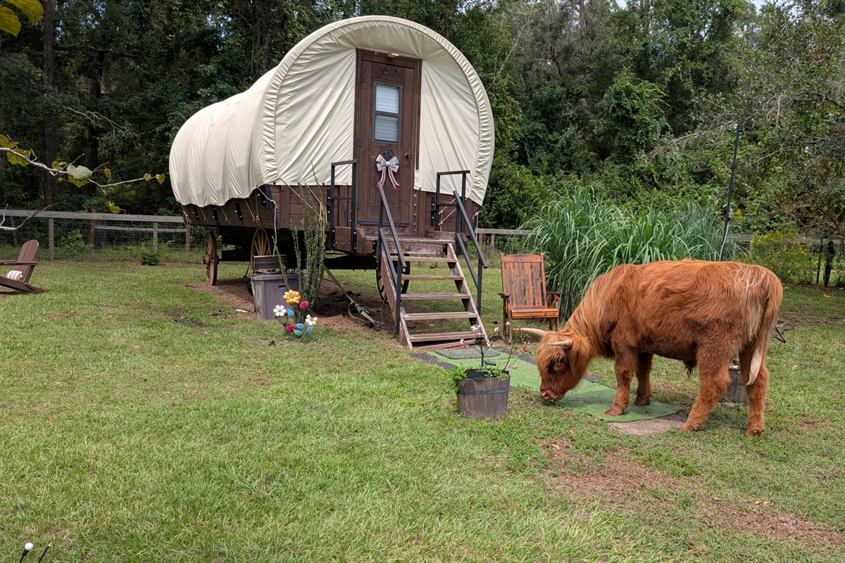 1 Bedroom • 1 Bathroom 1 Bath • Sleeps 1-2Step back to a simpler time, without giving up a single modern comfort, in our beautifully crafted luxury covered wagon. Nestled on 20 peaceful acres at a beloved animal sanctuary, this one-of-a-kind glamping retreat offers a rare chance to slow down, reconnect with nature, and experience the joy of being surrounded by happy, friendly farm animals.