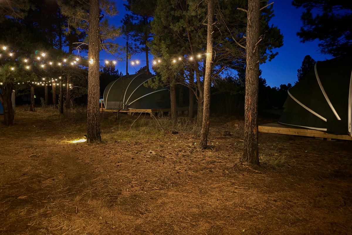 Your private tent captures the magic of camping with the comfort of a cozy hideaway. Inside, you’ll find a plush king bed, fresh linens, heating, AC, and electrical outlets — everything you need for a restful night beneath starry skies. Step outside in the morning to crisp mountain air, birdsong, and the scent of Ponderosa pines, a refreshing shift from daily routines.