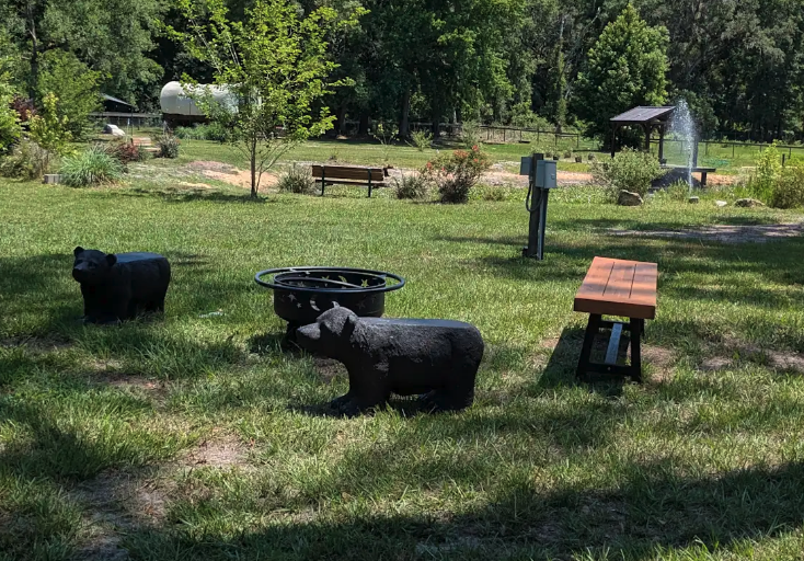 Step outside and take in serene pond views, twinkling fairy lights, and your private firepit with seating. Whether you’re roasting marshmallows, stargazing, or simply enjoying the quiet, evenings here are pure magic. During the day, wander the property, relax in shared outdoor spaces, or watch wildlife pass by.
