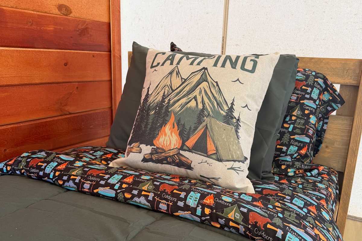 four comfortable twin beds with a plush bed pad (linens provided)