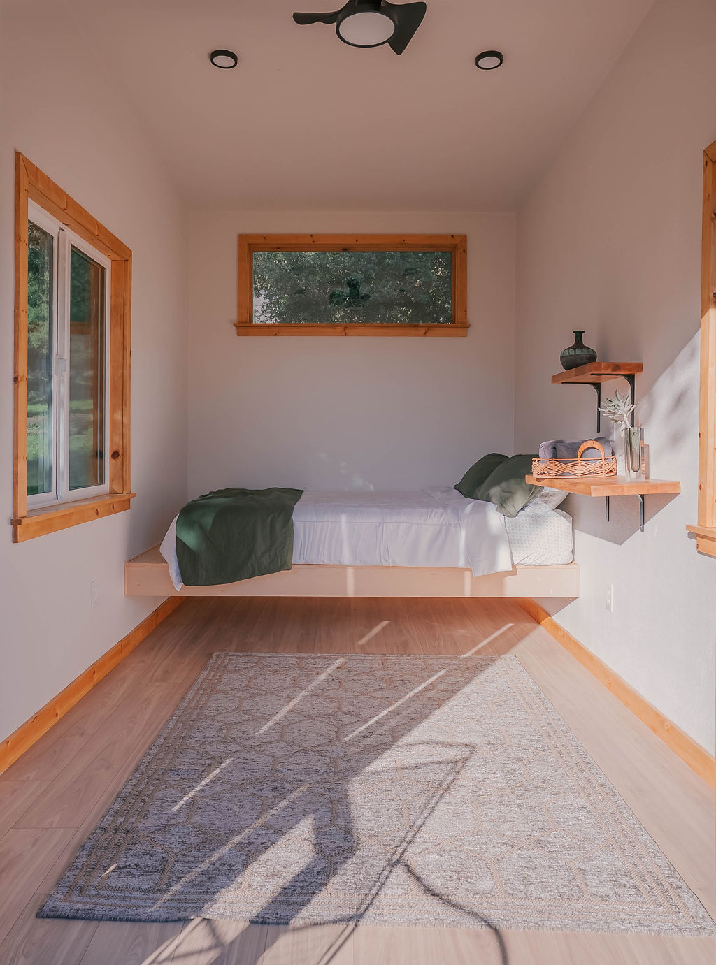 - The Sleeping Quarters: Plush queen bed, outfitted with fresh linens and positioned to offer forest views the moment you wake up.