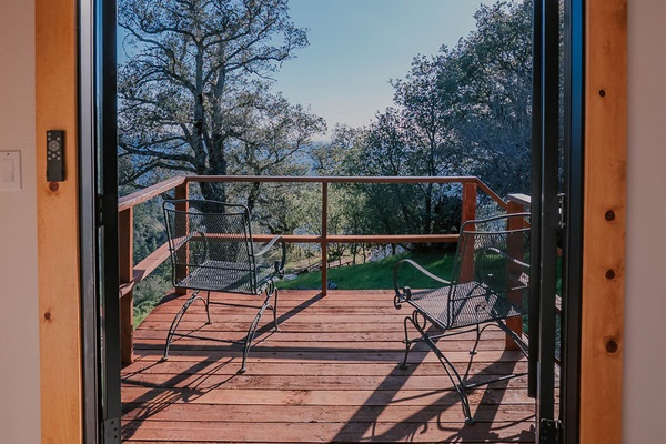 - Indoor-Outdoor Flow: Large glass-panelled double doors open wide to a private redwood deck, inviting the mountain breeze inside and offering front-row seats to the valley below.
