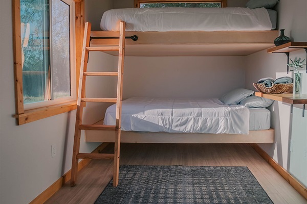 - The Sleeping Quarters: Two plush queen beds (including a unique "floating" bed design) outfitted with fresh linens, positioned to offer forest views the moment you wake up.